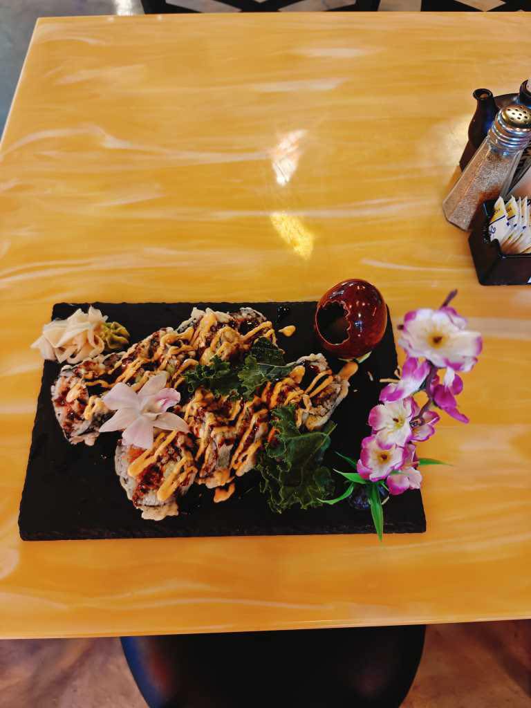 But the real excitement happens at the hibachi tables, where skilled chefs cook right in front of you with dramatic flames, steam, and expert slicing and dicing. Hibachi dinners include options such as chicken, steak, swordfish, scallops, filet mignon, lobster, and more.