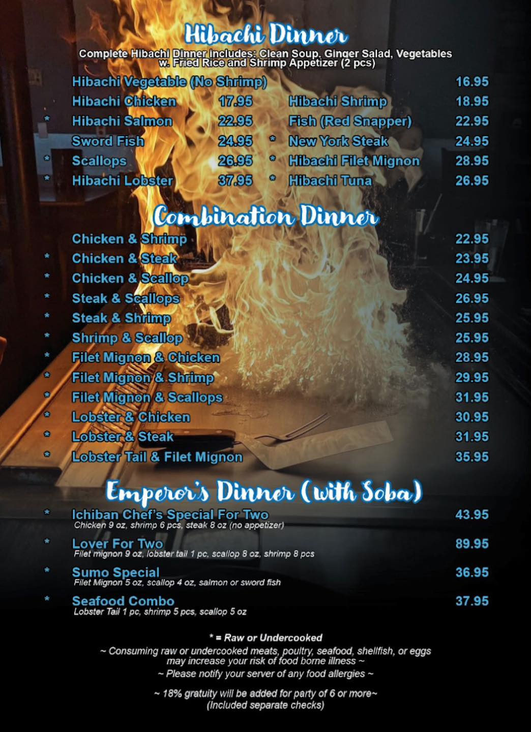 Roll over to Ichiban Japanese Steakhouse & Sushi and feel the heat of the tableside grills!